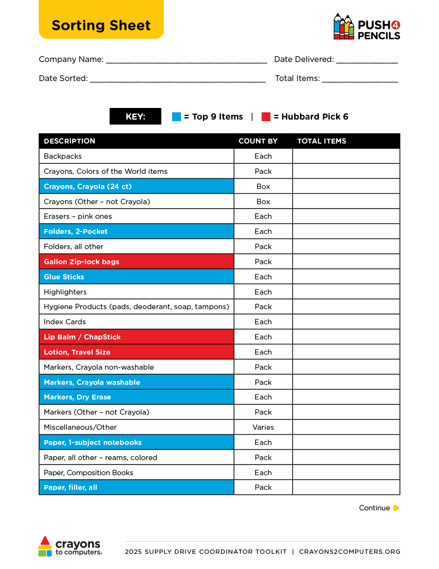 Organizations can participate in Push 4 Pencils in four ways—traditional or virtual supply drives, Backpacks & Beyond, or monetary donations.